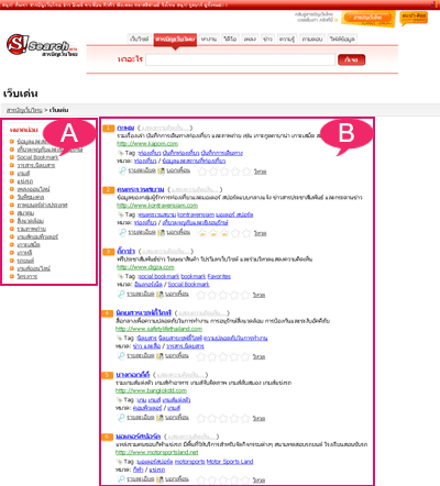 A หมวดเว็บเด่น - หมวดที่แสดงในรายการหมวด หมายถึงหมวดของเว็บแต่ละเอียดที่อยู่ในเว็บเด่น กรณีที่เลือกคลิกหมวดด้านซ้าย จะหมายถึงเลือกดูเว็บเด่นเฉพาะหมวดนั้น ๆ